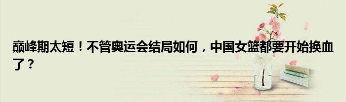 巅峰期太短!不管奥运会结局如何,中国女篮都要开始换血了?