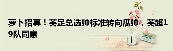 萝卜招募!英足总选帅标准转向瓜帅,英超19队同意
