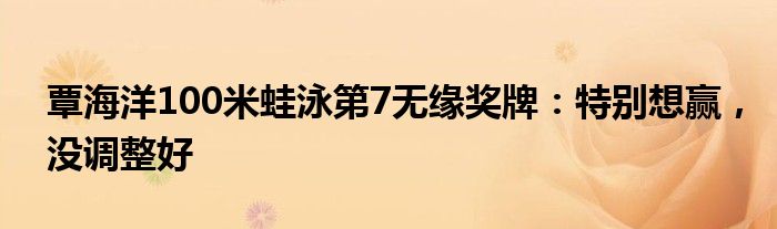 覃海洋100米蛙泳第7无缘奖牌:特别想赢,没调整好