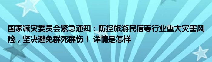 国家减灾委员会紧急通知:防控旅游民宿等行业重大灾害风险,坚决避免群死群伤! 详情是怎样