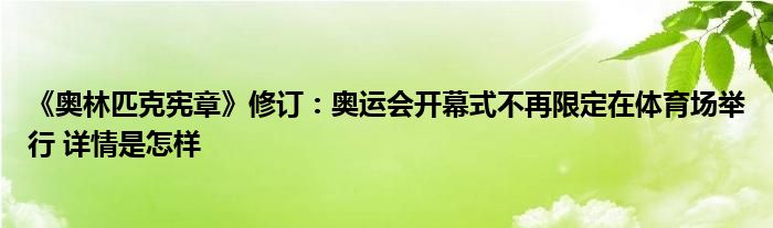 【《奥林匹克宪章》修订:奥运会开幕式不再限定在体育场举行】大家可以一起来了解一下这是什么情况!