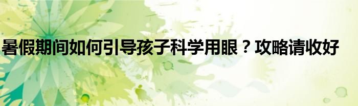 暑假期间如何引导孩子科学用眼?攻略请收好