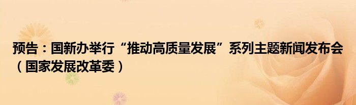 预告:国新办举行“推动高质量发展”系列主题新闻发布会(国家发展改革委)