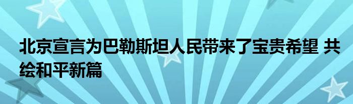 北京宣言为巴勒斯坦人民带来了宝贵希望 共绘和平新篇