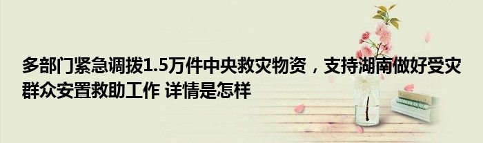 【多部门紧急调拨1.5万件中央救灾物资,支持湖南做好受灾群众安置救助工作】大家可以一起来了解一下这是什么情况!