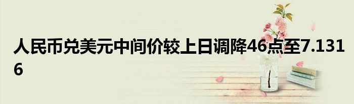 人民币兑美元中间价较上日调降46点至7.1316