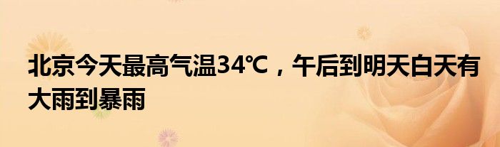 北京今天最高气温34℃,午后到明天白天有大雨到暴雨