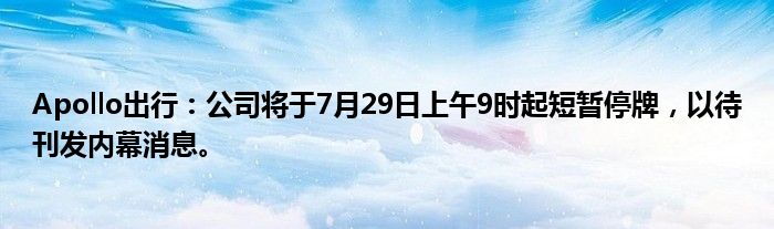 Apollo出行:公司将于7月29日上午9时起短暂停牌,以待刊发内幕消息。