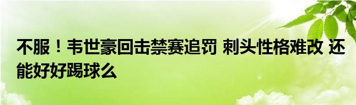 不服!韦世豪回击禁赛追罚 刺头性格难改 还能好好踢球么
