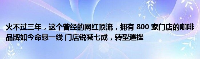 火不过三年,这个曾经的网红顶流,拥有 800 家门店的咖啡品牌如今命悬一线 门店锐减七成,转型遇挫