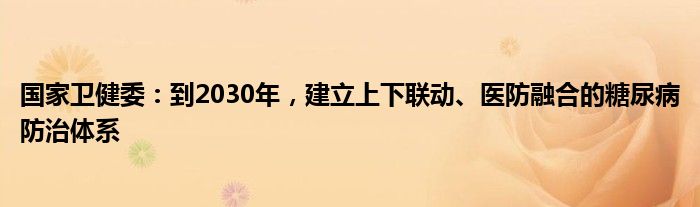 国家卫健委:到2030年,建立上下联动、医防融合的糖尿病防治体系