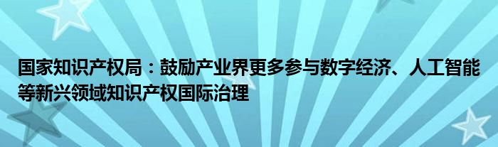 国家知识产权局:鼓励产业界更多参与数字经济、人工智能等新兴领域知识产权国际治理