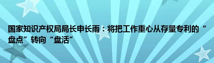 国家知识产权局局长申长雨:将把工作重心从存量专利的“盘点”转向“盘活”