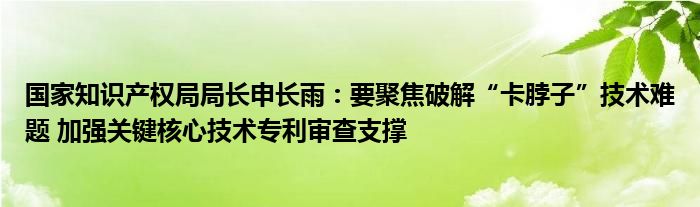 国家知识产权局局长申长雨:要聚焦破解“卡脖子”技术难题 加强关键核心技术专利审查支撑