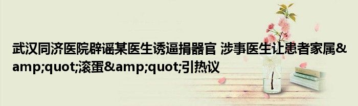武汉同济医院辟谣某医生诱逼捐器官 涉事医生让患者家属"滚蛋"引热议