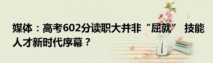 媒体:高考602分读职大并非“屈就” 技能人才新时代序幕?