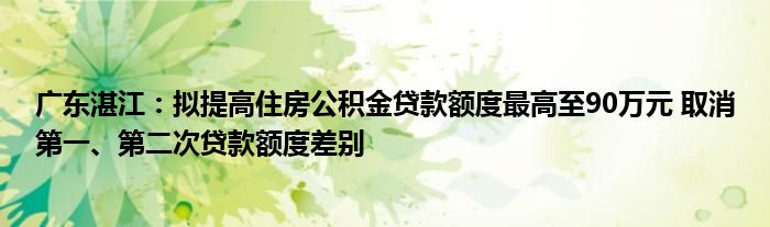 广东湛江:拟提高住房公积金贷款额度最高至90万元 取消第一、第二次贷款额度差别