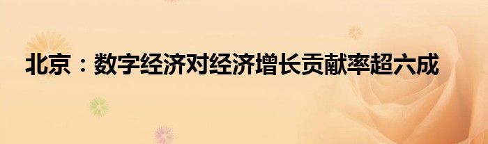 北京:数字经济对经济增长贡献率超六成