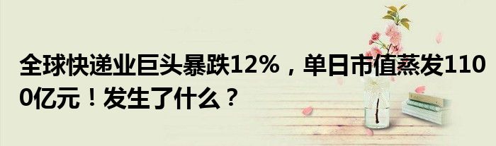 全球快递业巨头暴跌12%,单日市值蒸发1100亿元!发生了什么?
