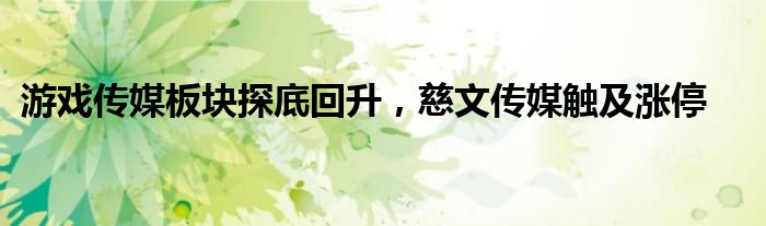 游戏传媒板块探底回升,慈文传媒触及涨停