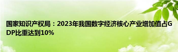 国家知识产权局:2023年我国数字经济核心产业增加值占GDP比重达到10%