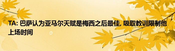 TA: 巴萨认为亚马尔天赋是梅西之后最佳, 吸取教训限制他上场时间