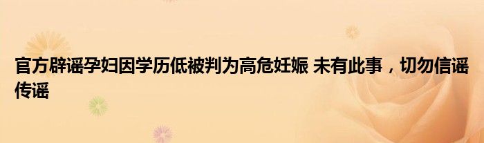 官方辟谣孕妇因学历低被判为高危妊娠 未有此事,切勿信谣传谣