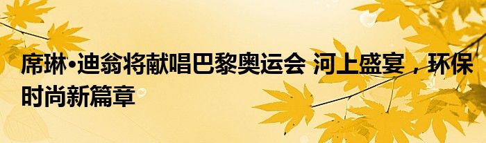 席琳·迪翁将献唱巴黎奥运会 河上盛宴,环保时尚新篇章