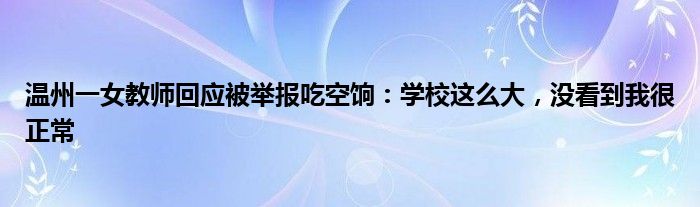 温州一女教师回应被举报吃空饷:学校这么大,没看到我很正常