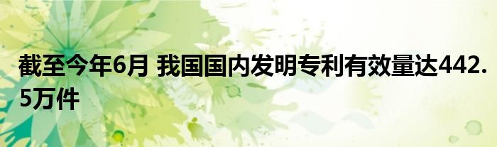 截至今年6月 我国国内发明专利有效量达442.5万件