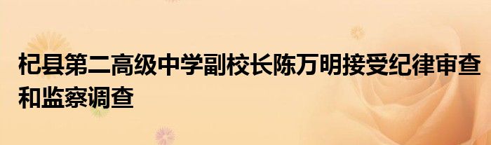 杞县第二高级中学副校长陈万明涉嫌严重违纪违法,目前正接受杞县纪委监委纪律审查和监察调查。