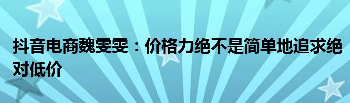抖音电商魏雯雯:价格力绝不是简单地追求绝对低价