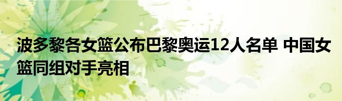 波多黎各女篮公布巴黎奥运12人名单 中国女篮同组对手亮相