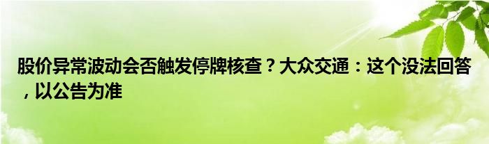 股价异常波动会否触发停牌核查?大众交通:这个没法回答,以公告为准