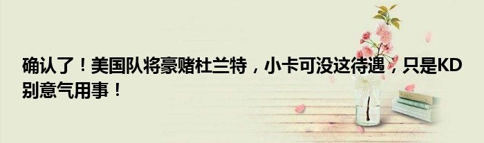 确认了!美国队将豪赌杜兰特,小卡可没这待遇,只是KD别意气用事!