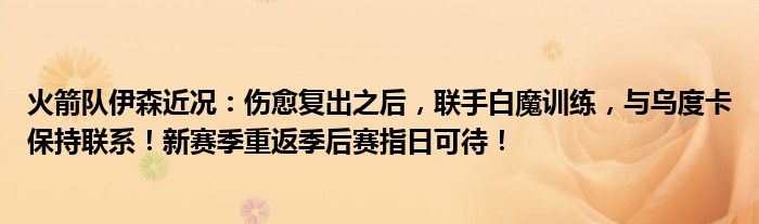 火箭队伊森近况:伤愈复出之后,联手白魔训练,与乌度卡保持联系!新赛季重返季后赛指日可待!