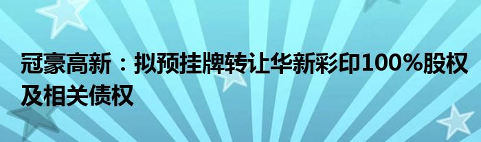 冠豪高新:拟预挂牌转让华新彩印100%股权及相关债权