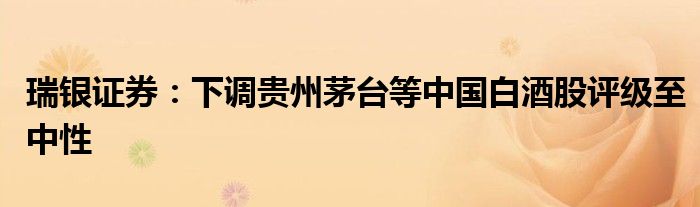 瑞银证券:下调贵州茅台等中国白酒股评级至中性