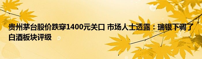 贵州茅台股价跌穿1400元关口 市场人士透露:瑞银下调了白酒板块评级