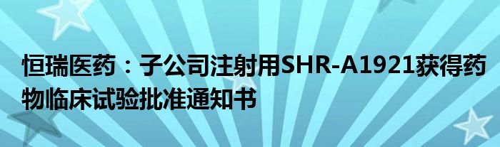 恒瑞医药:子公司注射用SHR-A1921获得药物临床试验批准通知书