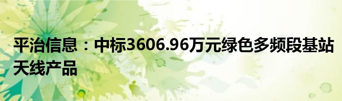 平治信息:中标3606.96万元绿色多频段基站天线产品
