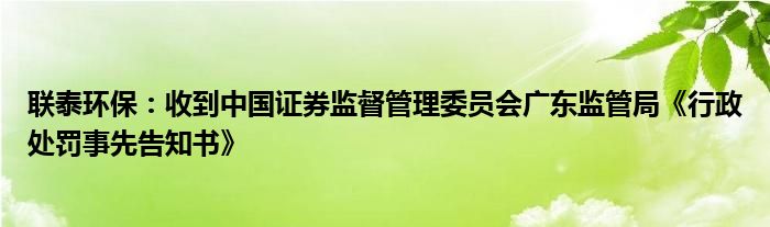 联泰环保:收到中国证券监督管理委员会广东监管局《行政处罚事先告知书》