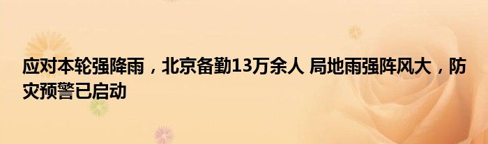 应对本轮强降雨,北京备勤13万余人 局地雨强阵风大,防灾预警已启动