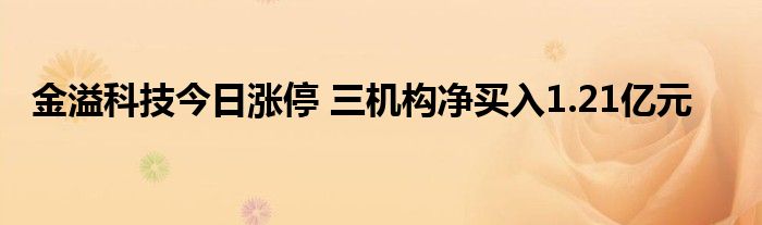 金溢科技今日涨停 三机构净买入1.21亿元