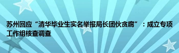 苏州回应“清华毕业生实名举报局长团伙贪腐”:成立专项工作组核查调查