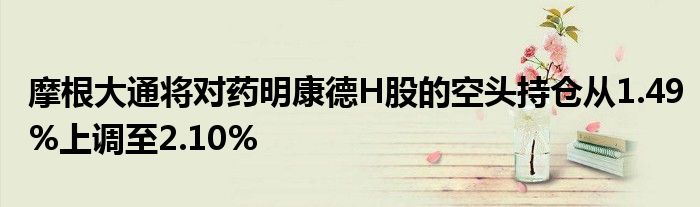 摩根大通将对药明康德H股的空头持仓从1.49%上调至2.10%