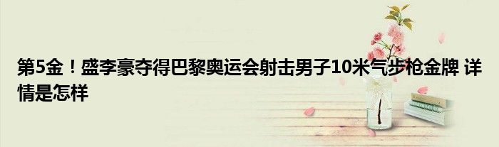 【第5金!盛李豪夺得巴黎奥运会射击男子10米气步枪金牌】大家可以一起来了解一下这是什么情况!