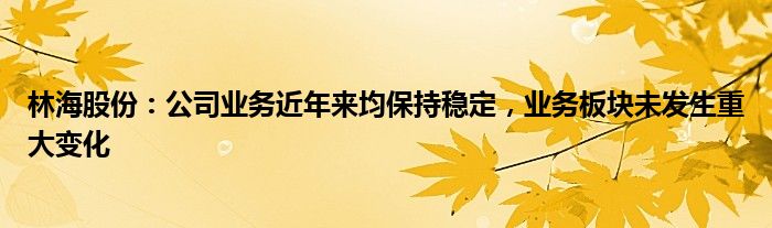 林海股份:公司业务近年来均保持稳定,业务板块未发生重大变化
