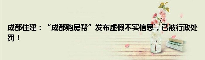 成都住建:“成都购房帮”发布虚假不实信息,已被行政处罚!