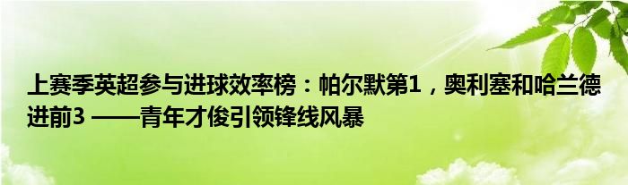 上赛季英超参与进球效率榜:帕尔默第1,奥利塞和哈兰德进前3 ——青年才俊引领锋线风暴